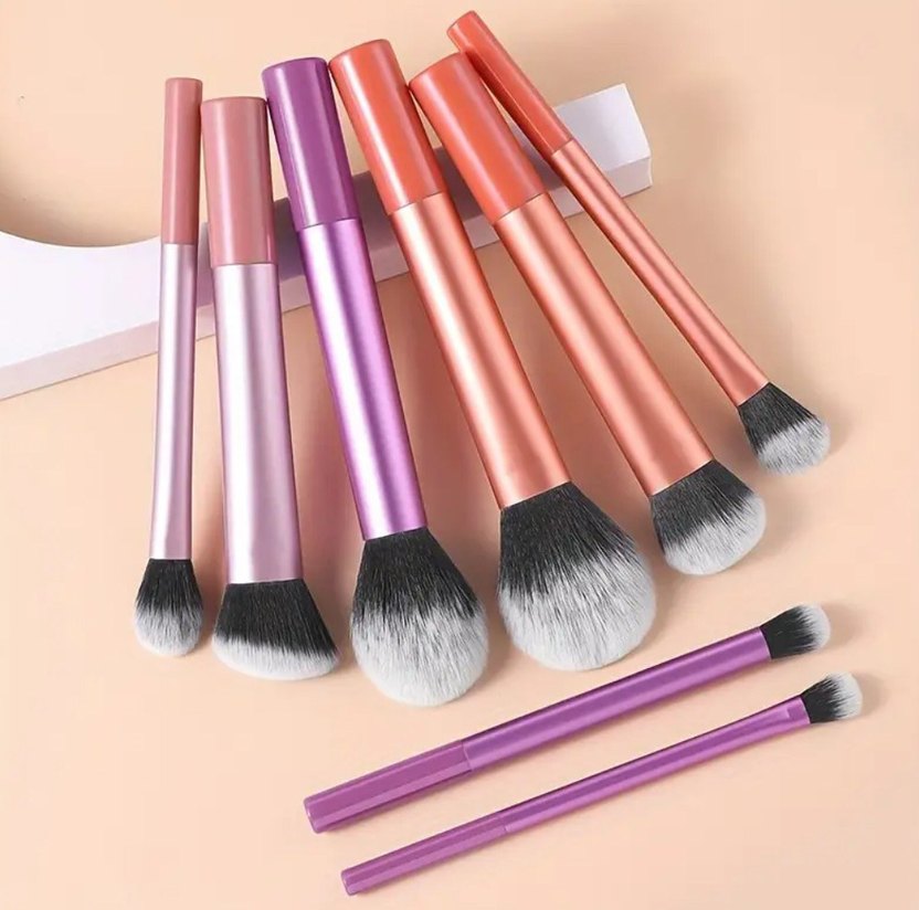 Yumuşak kıllara ve ergonomik saplara sahip pastel renkli makyaj fırça seti, hassas uygulama sağlar.