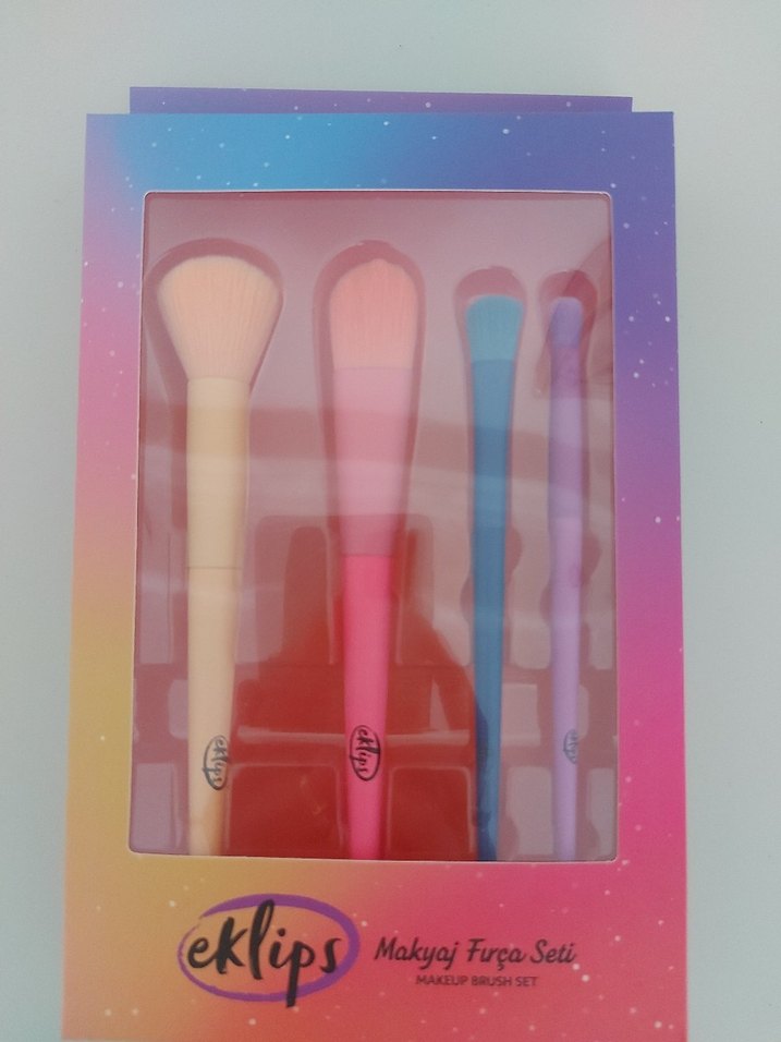 Eklips marka, dört pastel renkli makyaj fırçası içeren set. Farklı makyaj ürünlerini uygulamak için kullanılır. ️