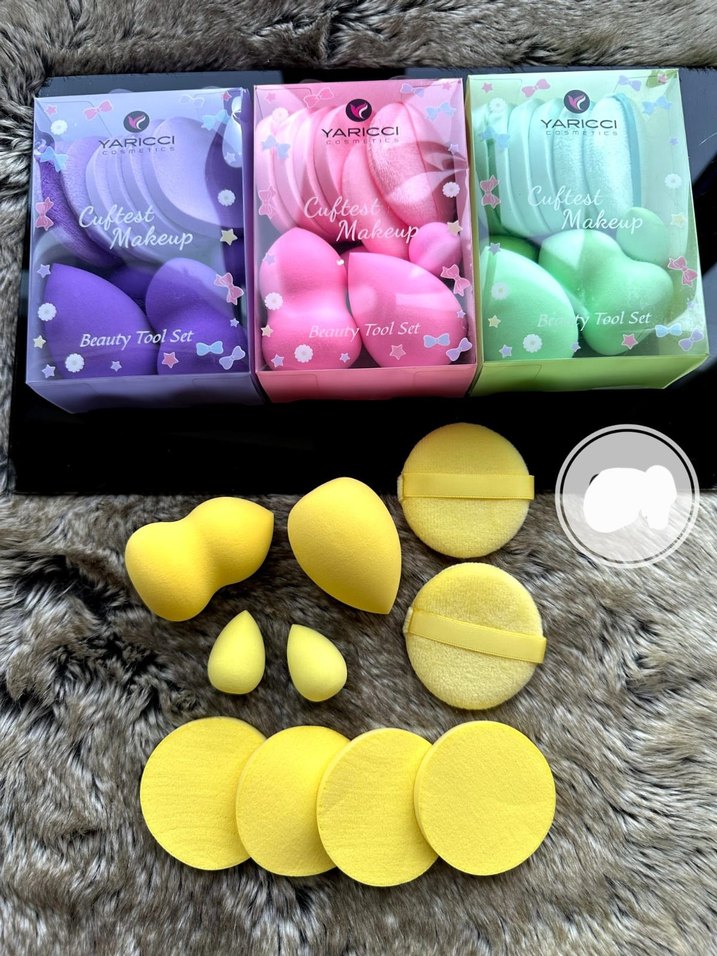 Pastel renklerde farklı şekil ve boyutlarda makyaj süngerleri ile pürüzsüz uygulama sağlar. YARICCI markalı kutusunda "Beauty To" yazısı bulunur.