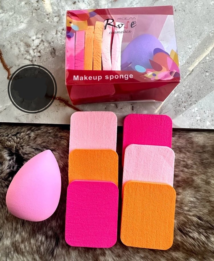 Çeşitli şekil ve boyutlarda pastel renkli makyaj süngerleri seti. Pürüzsüz uygulama için damla ve dikdörtgen şekiller içerir.
