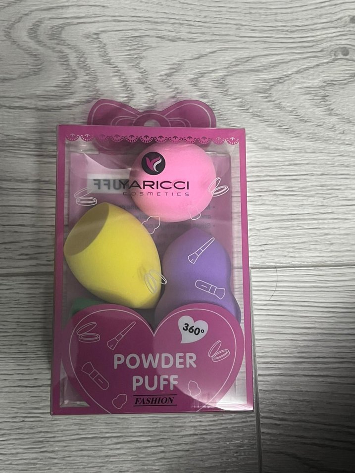 Pembe, sarı ve mor pastel renklerde makyaj süngerleri içeren set. Pürüzsüz pudra uygulaması için uygundur. AEUYARICCI markalıdır.
