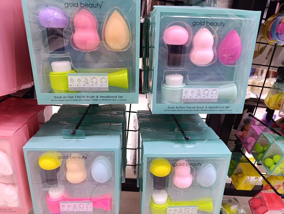 Pastel renklerde makyaj süngerleri, çift etkili yüz fırçaları ve saç bantları ile birlikte gelir. Farklı sünger şekilleri ve renkleri içerir.