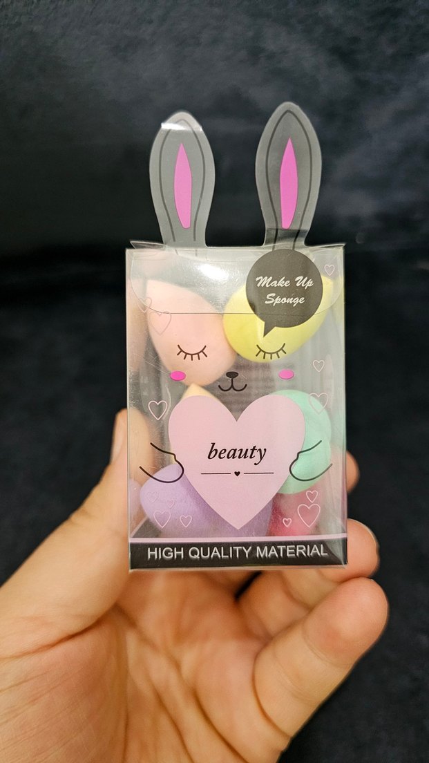 Pastel tonlarda, yumuşak dokulu ve yüksek kaliteli malzemeden üretilmiş çok renkli makyaj süngerleri seti.