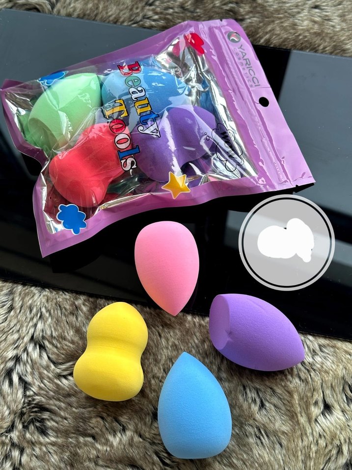 Farklı şekillerde pastel renkli makyaj süngerleri seti. Yumuşak yapısıyla fondöten ve kapatıcı uygulamasına uygundur.