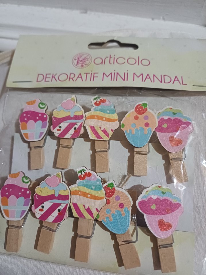 Pastel renklerde, cupcake desenli dekoratif mini mandal seti. Küçük el işi veya tırnak süslemeleri için uygundur.