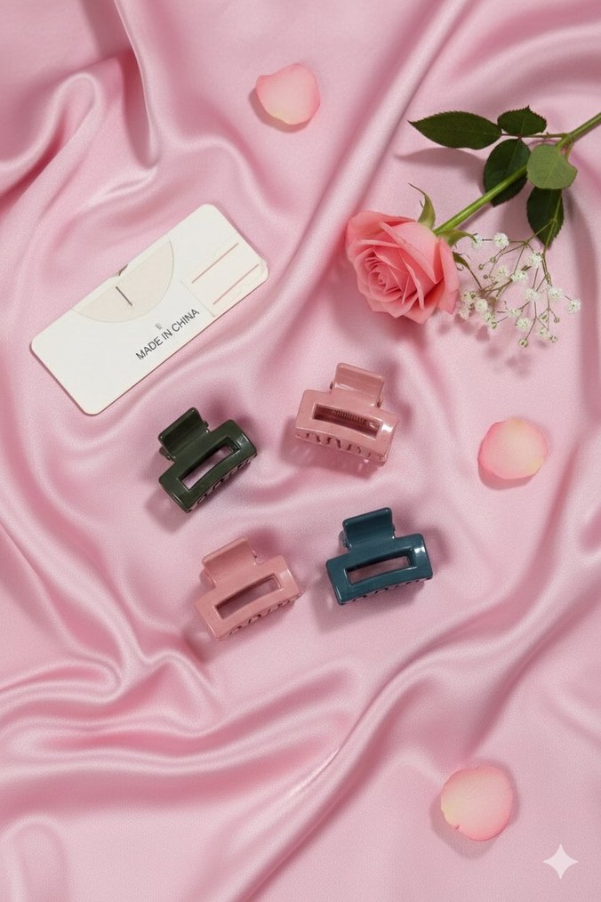 Pastel tonlarda, plastikten yapılmış minimalist saç tokası seti. Yumuşak pembe ve sakin renklerle zahmetsiz şıklık sağlar.