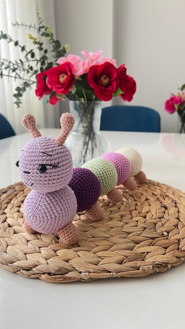 Pastel Renkli Mor Tırtıl el örgü Oyuncak