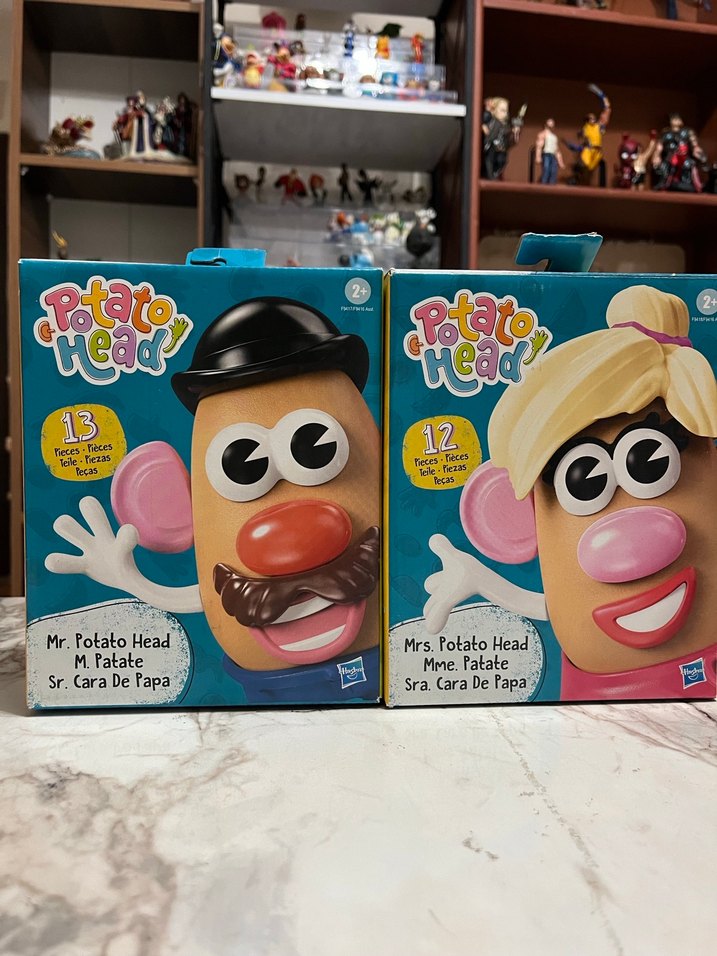 Pastel renklerde Mr. ve Mrs. Potato Head oyuncakları, değiştirilebilir yüz parçalarıyla birlikte geliyor. Mr. Potato Head 13, Mrs. Potato Head ise 12 yüz parçasına sahip.
