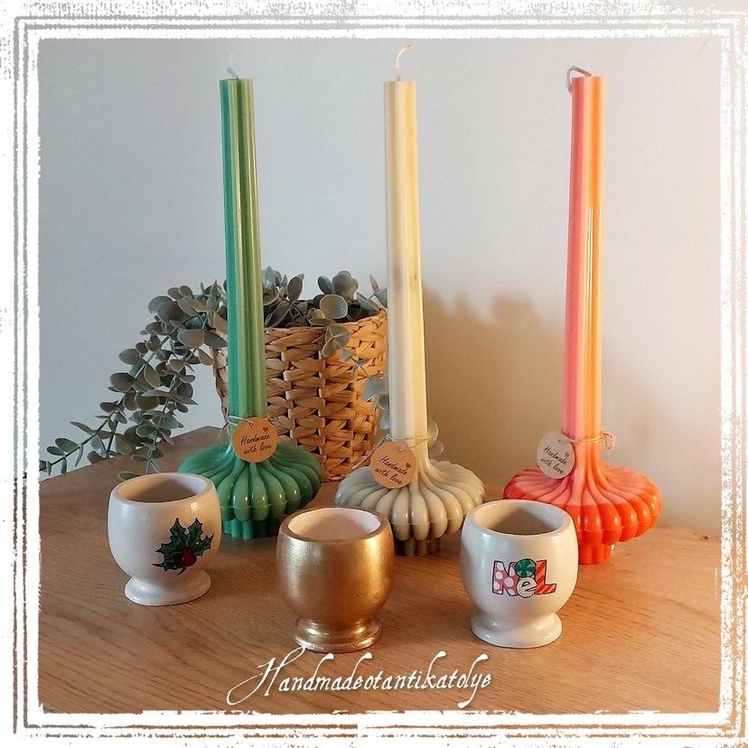 Pastel renklerde uzun mumlar ve üzerinde yılbaşı temalı desenler bulunan mumluklardan oluşan set. ️Bir mum ve mum tutucudan oluşan set fiyatıdır. Renk tercihinizi yazarak alış yapınız.