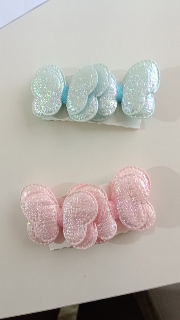 Yumuşak mavi ve pembe pastel tonlarda, nakışlı kurdele fiyonkları içeren sade ve bohem tarzda saç tokası seti.