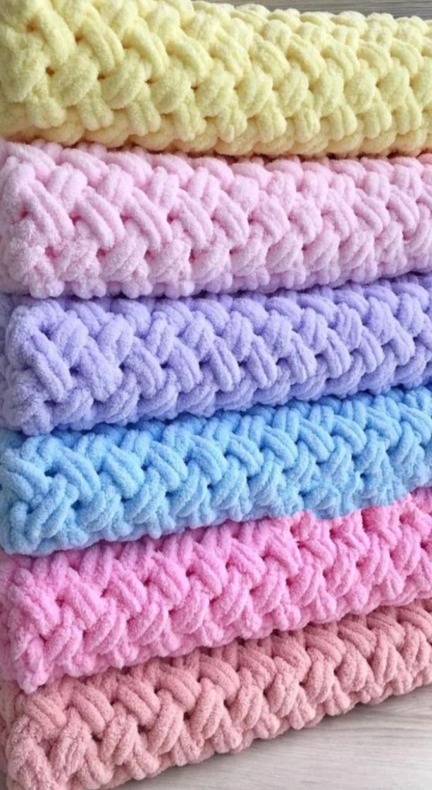 Pastel renklerde, nakışlı desenli yumuşak örgü çocuk battaniyeleri, çocuklar için sıcaklık ve konfor sağlar.