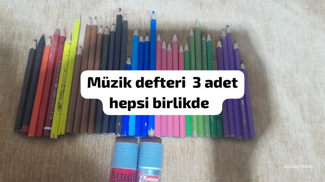 Pastel renklerde müzik defteri 3 adet ve çeşitli renkli kurşun kalemlerden oluşan okul aktivite seti. 'Studil' markalıdır.