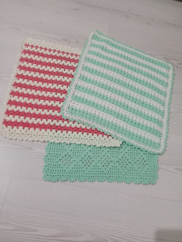 Pastel renklerde, çeşitli çizgili ve desenli yumuşak örgü banyo lifleri ,örgü.Tekli satış fiyatı.istenilen urün için yeniden ilan açılacak