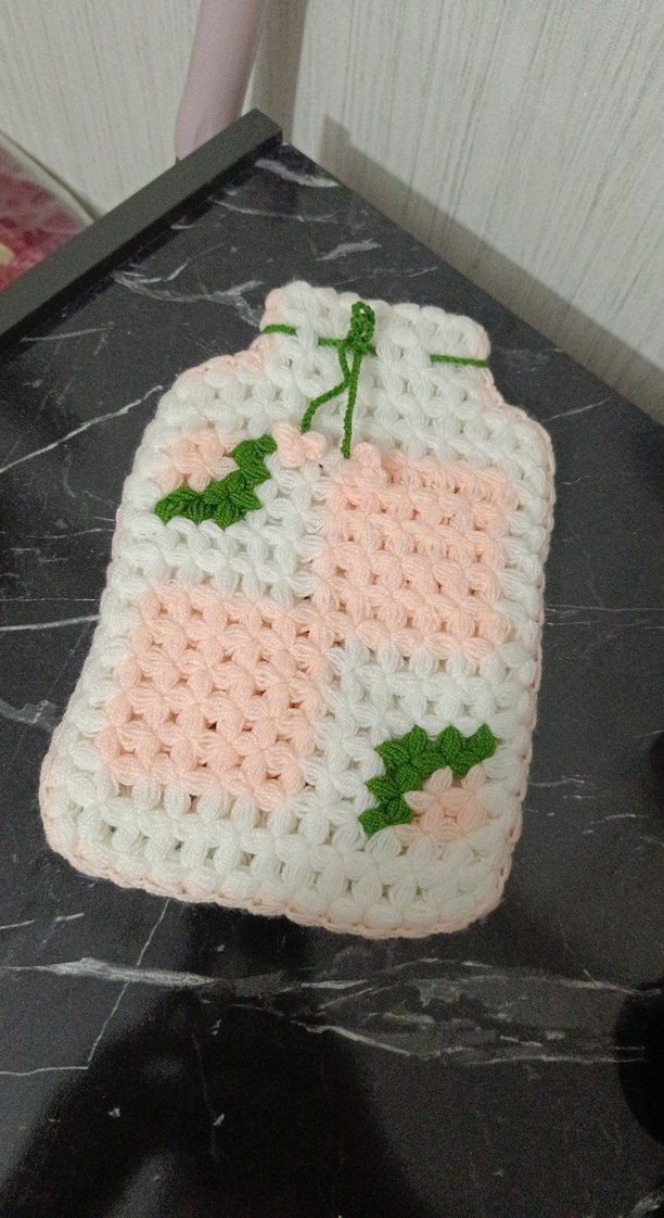 Beyaz ve pastel tonlarda, yumuşak dokulu, yeşil ve pembe detaylı örgü banyo süngeri. sıfır el örgüsü çeyizlik lif