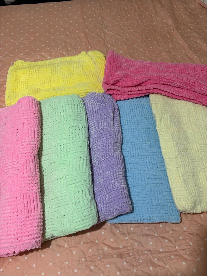 Pastel renklerde, desensiz dokulu örgü çocuk battaniyesi. Yumuşak ve rahat, çocuklar için uygun. İpleri NAKO ve ÖREN BAYANDIR