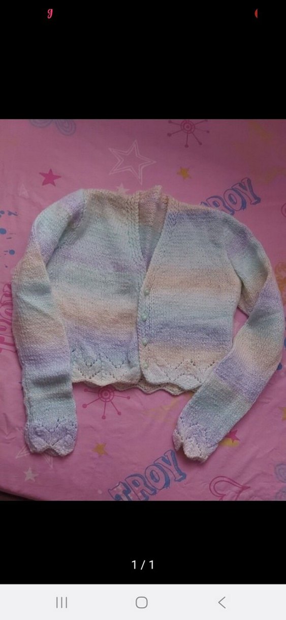 örgü dokulu, uzun kollu ve ince oturan kısa hırka. Alt kısmında zarif dalgalı kenar detayı bulunur.
