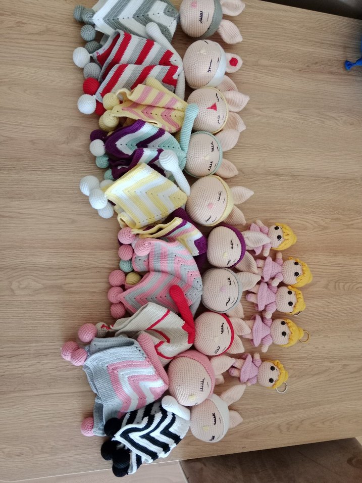 Pastel Renkli Örgü Tavşan ve Bebek Oyuncaklar