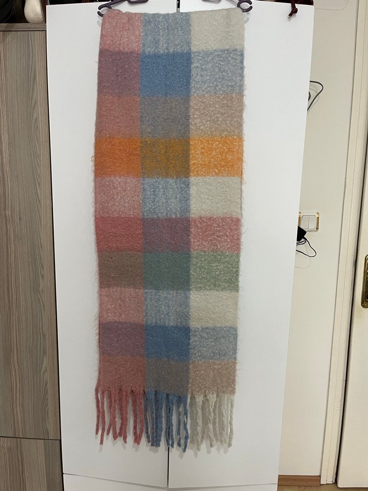 Mavi den aldım 2 defa taktım çok yeni ve temiz püskülleri ile birlikte 2.40 cm . Renkli ve yün çok sıcak tutuyor