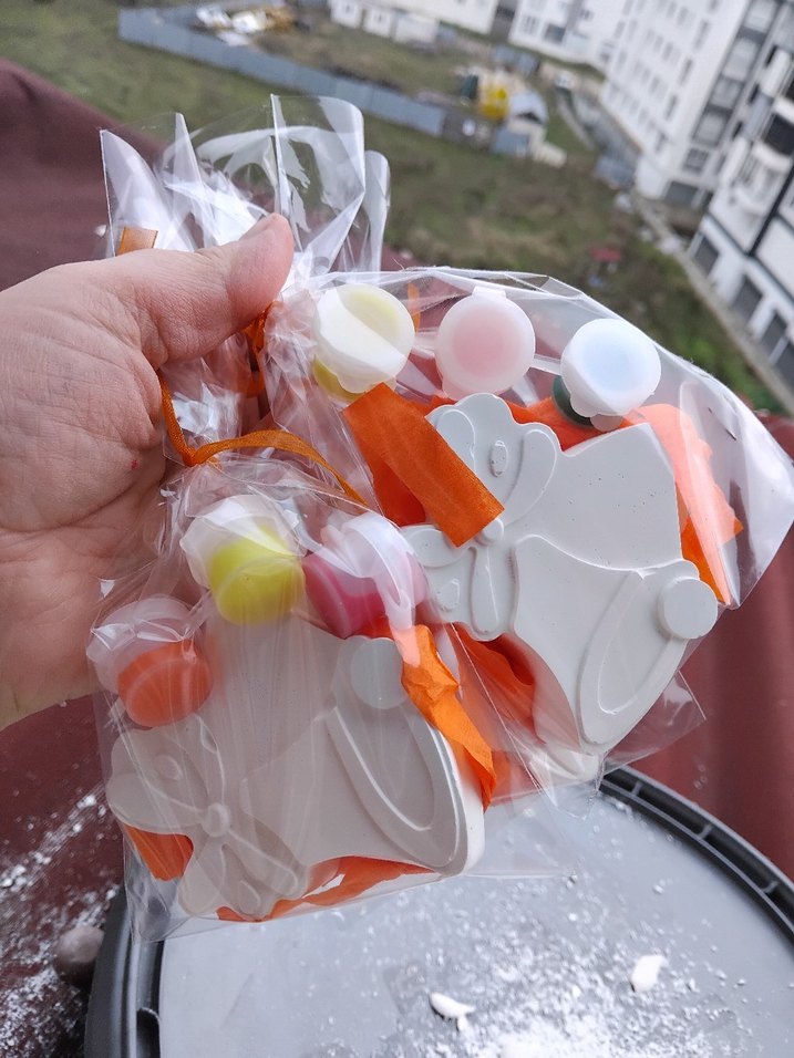 Beyaz ve pastel tonlarda, parti süsleri içeren renkli bir set.