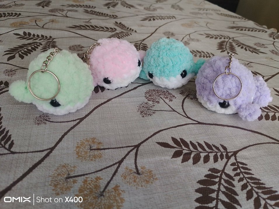 Pastel renklerde, yumuşak ve sevimli peluş oyuncaklar anahtarlık olarak kullanılır. balina anahtarlık istenilen renkte yapılır