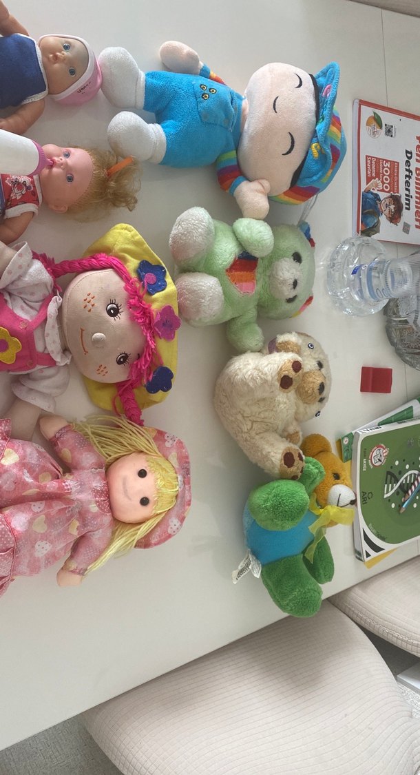 Yumuşak dokulu, pastel renklerde çeşitli karakterlerden oluşan peluş oyuncak seti. Oyun veya koleksiyon için uygundur.