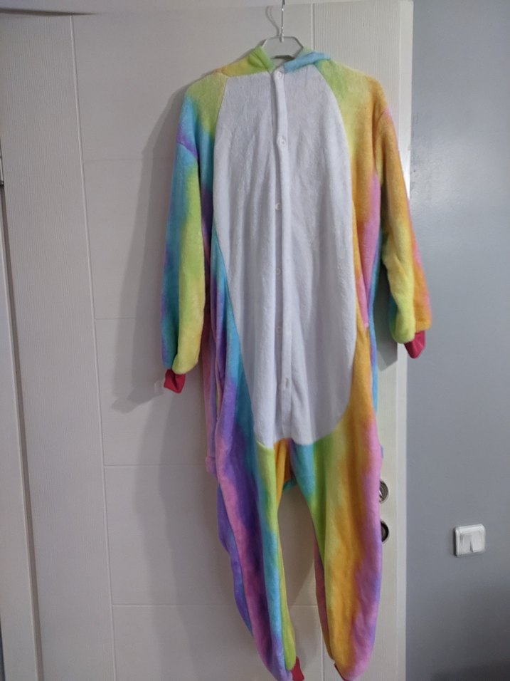 Bu kız pijaması, pastel bağlama desenli, uzun kollu ve kapşonlu Yumuşak düğmeli kapanışı vardır. yurtdışından alındı