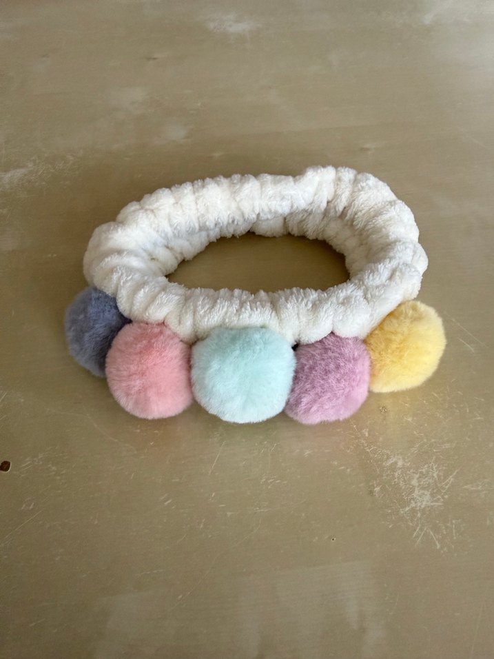 Yumuşak ve rahat elastik saç bandı, pastel renkli peluş ponponlarla bohem tarzı için uygun. Hiç kullanılmadı.