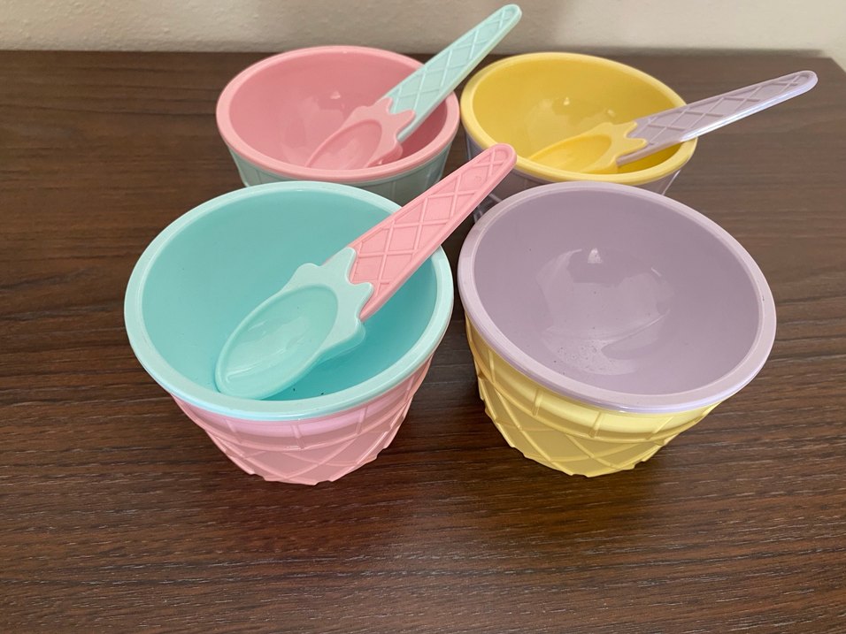 Pastel Renkli Plastik Dondurma Kasesi ve Kaşığı