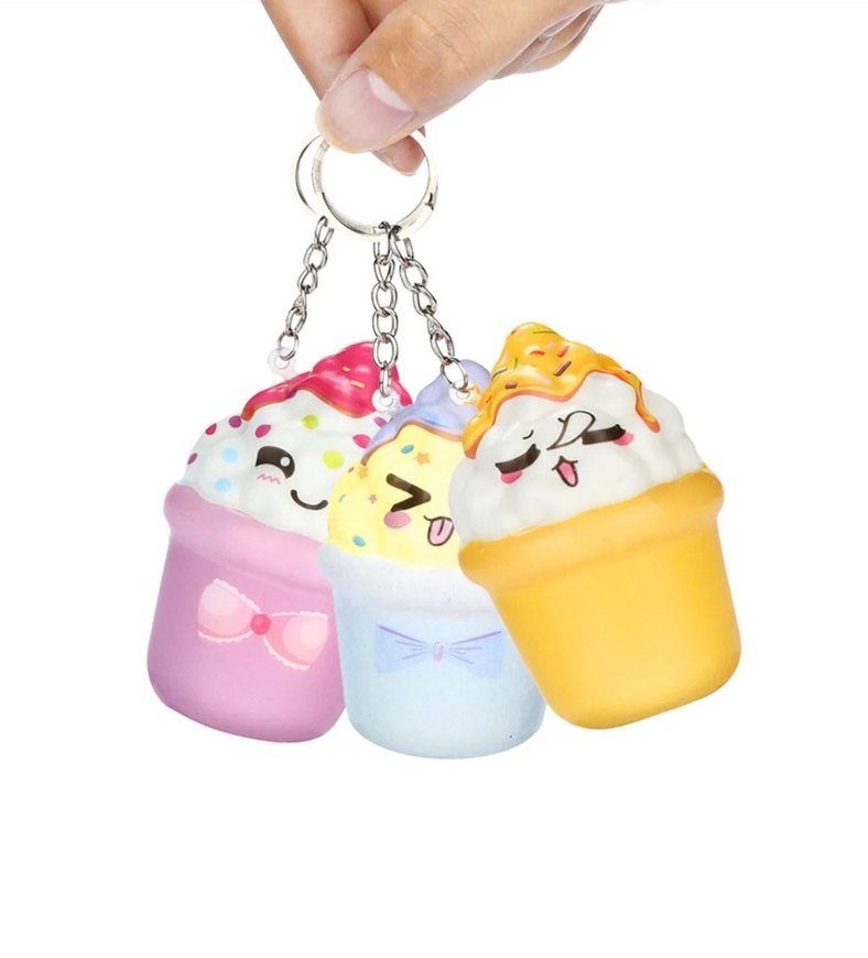 Pastel renklerde, pofuduk dokulu üç adet dondurma figürlü anahtarlık seti, anahtarlarınıza sıcak ve eğlenceli bir hava katıyor.