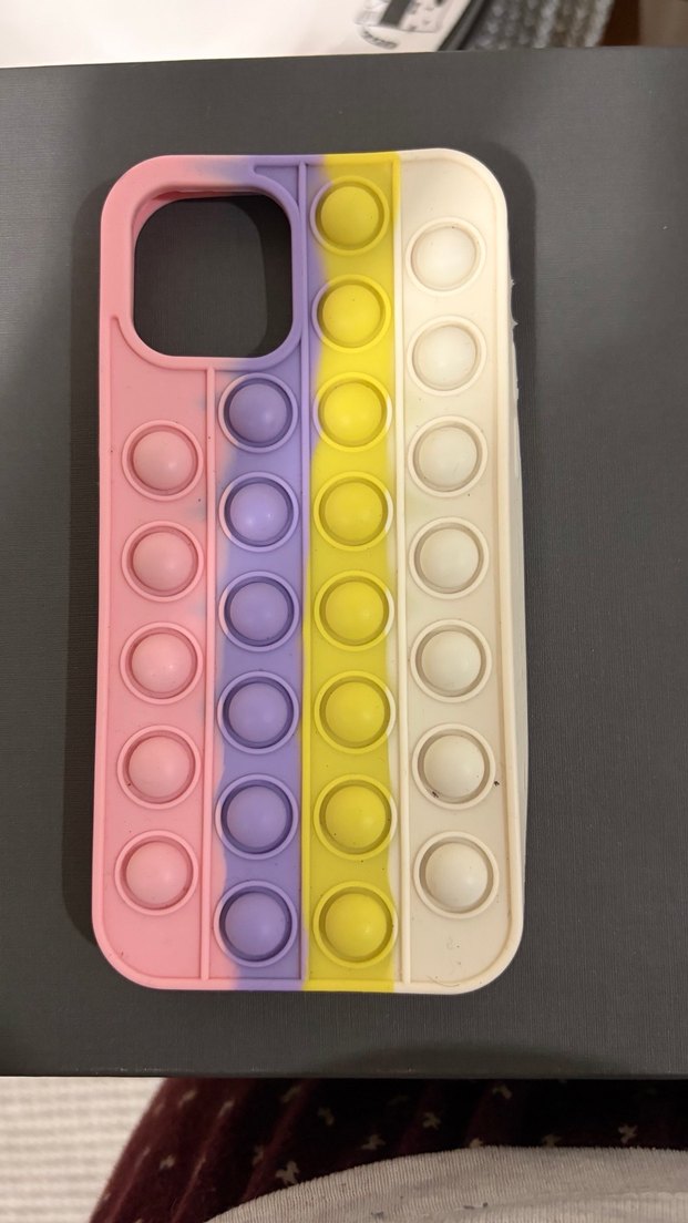 Pastel renklerde, çok renkli ve düğmeli pop kültür tarzında telefon kılıfı, eğlenceli bir dokunuş sunar.