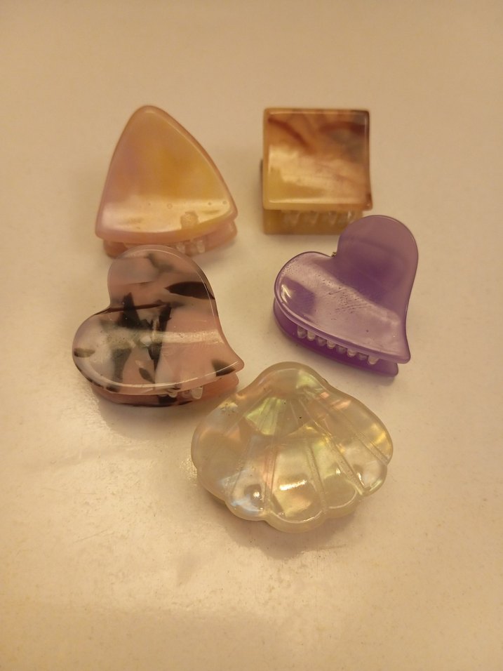 Pastel renklerde, akrilikten yapılmış farklı vintage şekillerde minik saç tokaları seti, bohem ve retro tarzlar için uygun.