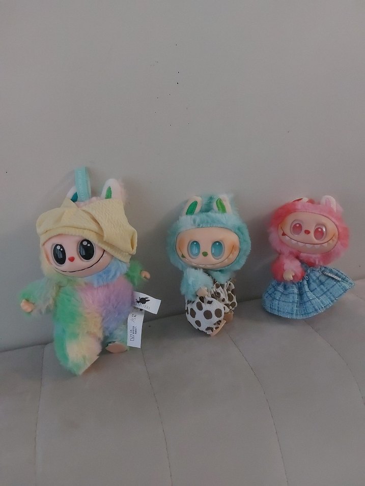 adet fiyatıdır. ilan açtırınız.Pastel renklerde, yumuşak kumaştan yapılmış, sevimli yüzlü ve çeşitli kıyafetlere sahip peluş oyuncaklar. başları dönüyor