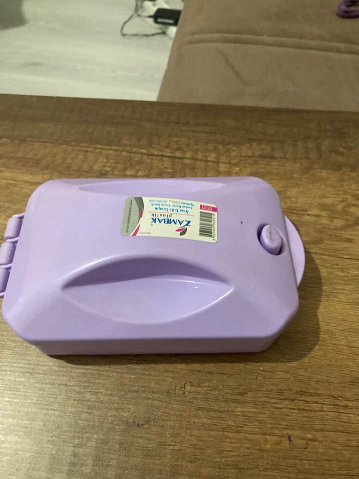 Pastel mor renkte sterilizatör kutusu, güvenli kapak ve kompakt tasarıma sahiptir. Kolay kullanım için basit kilit mekanizması bulunur. Girgir