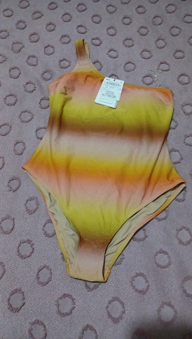 Tek omuzlu, pastel bağlama desenli, salaş kesim ve midi boyda, plaj için rahat ve şık bir mayo.