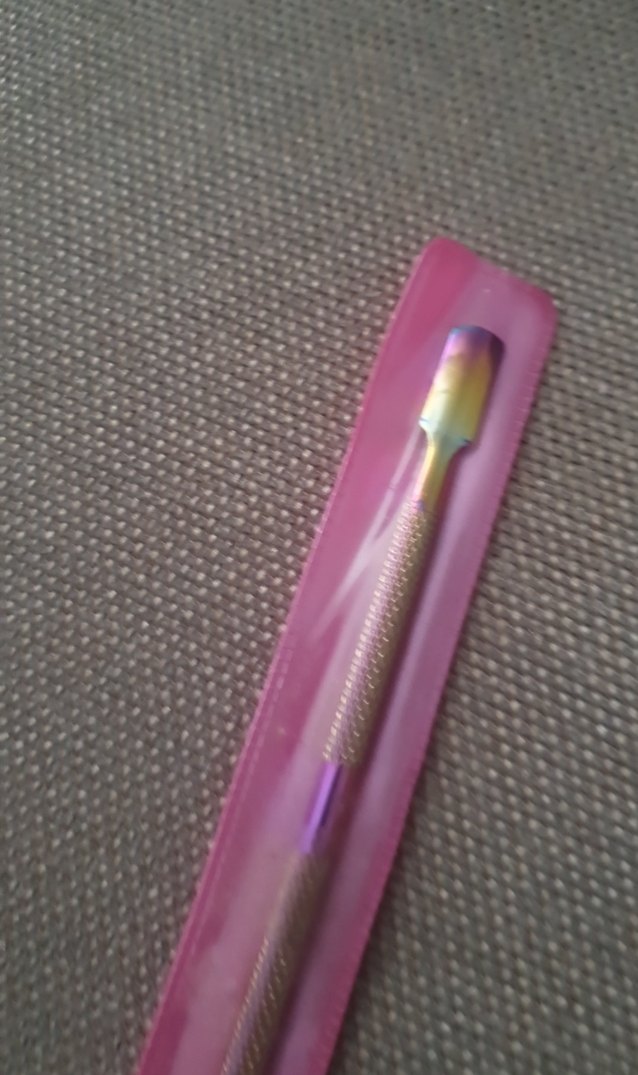 Pastel renkli, dokulu saplı tırnak eti itici. Çok renkli tasarımı ve koruyucu kılıfı bulunur.