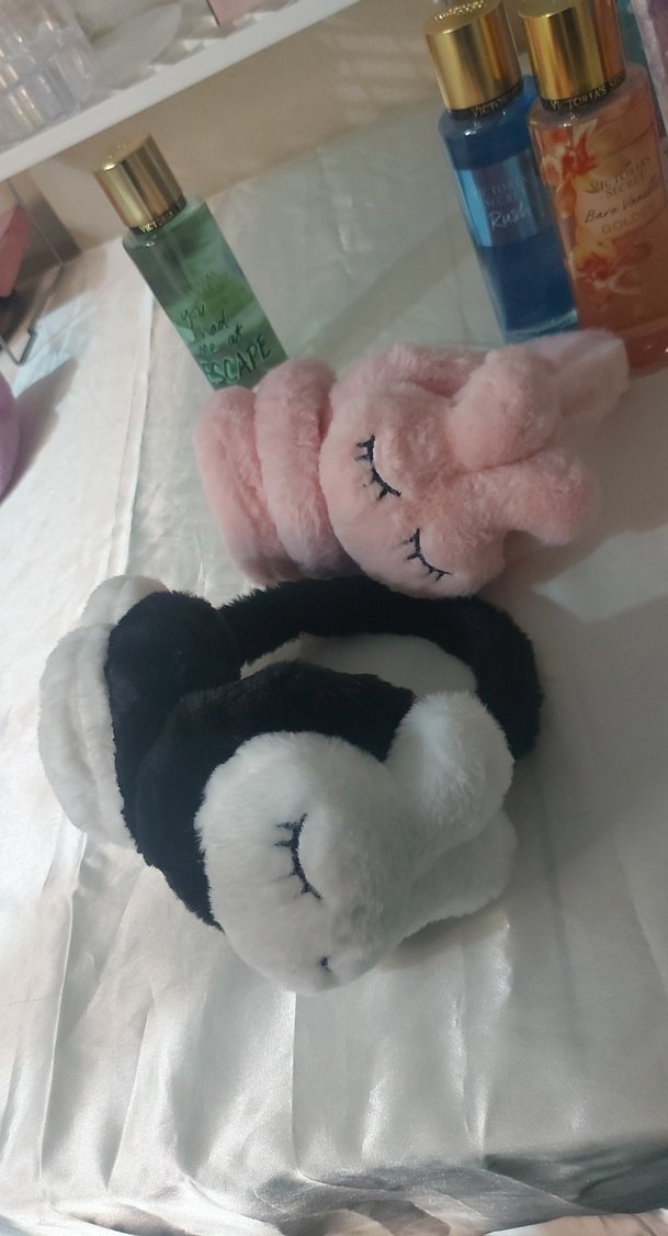 Beyaz ve pembe pastel renklerde, kapalı göz tasarımlı yumuşak peluş oyuncaklar. adet fiyatıdır
