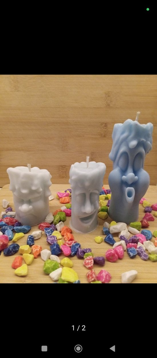 Üç adet pastel renkli, farklı yüz ifadelerine sahip mum seti marka temsili istenilen renk hazırlanır