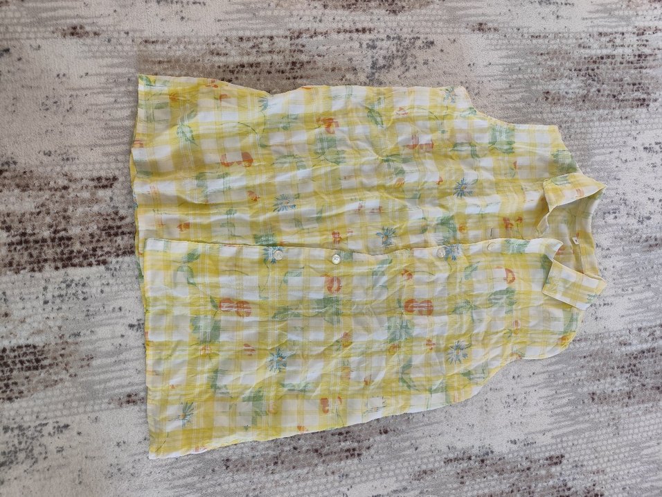 Pastel sarı bağlama desenli, yumuşak ve hafif kumaştan yapılmış mutfak önlüğü.