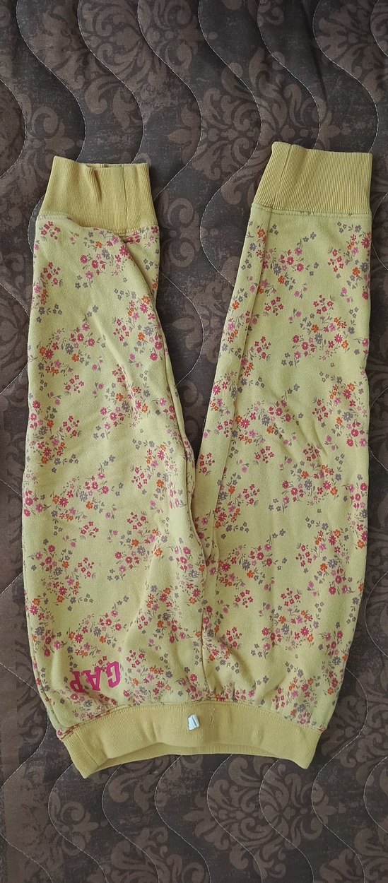 Pastel sarı renkte, çiçek desenli ve dantel detaylı, rahat kesim kız pantolonu. Bohem tarzını yansıtır.