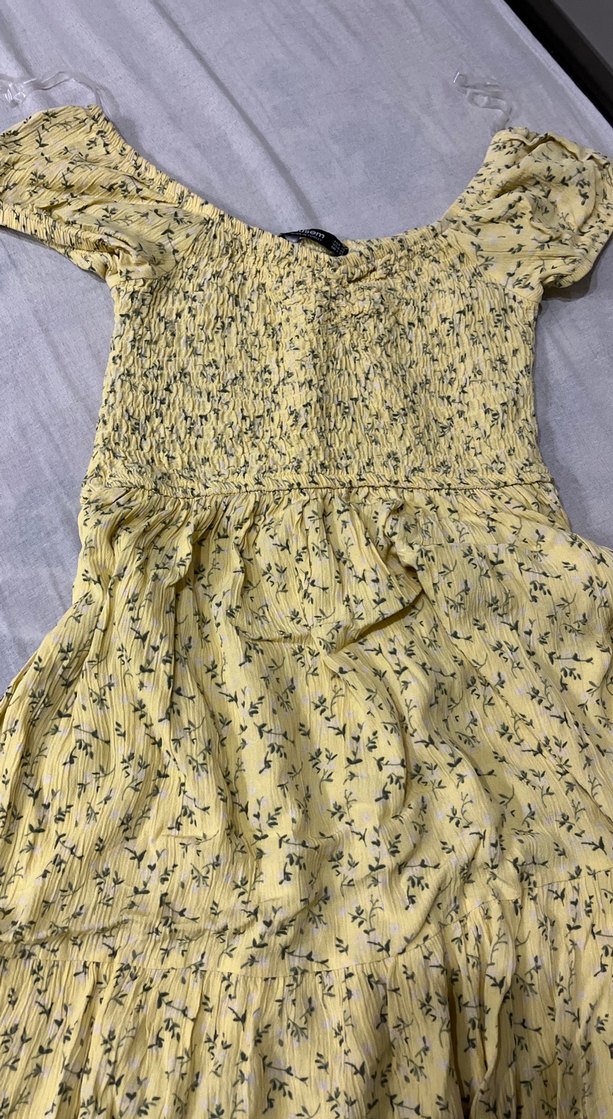 pastel sarı çiçekli elbise