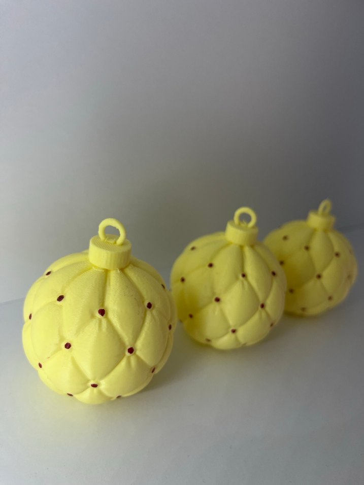 Pastel sarı renkte, kabarık kapitone dokulu Noel ağacı süsü. Yılbaşı ağacı, raf, kapı kolu veya masa üstü dekoru olarak kullanılabilir. Minimal ve modern çizgisiyle klasik kırmızı-yeşil yılbaşı dekorlarından ayrılır. Pastel tonu sayesinde hem sıcak hem de zarif bir görünüm sunar. 3’lü set olarak gönderilir. Hafif ve dayanıklı 3D baskı malzemeden üretilmiştir. Yılbaşı dekorasyonuna sade ama şık bir dokunuş katmak isteyenler için idealdir.