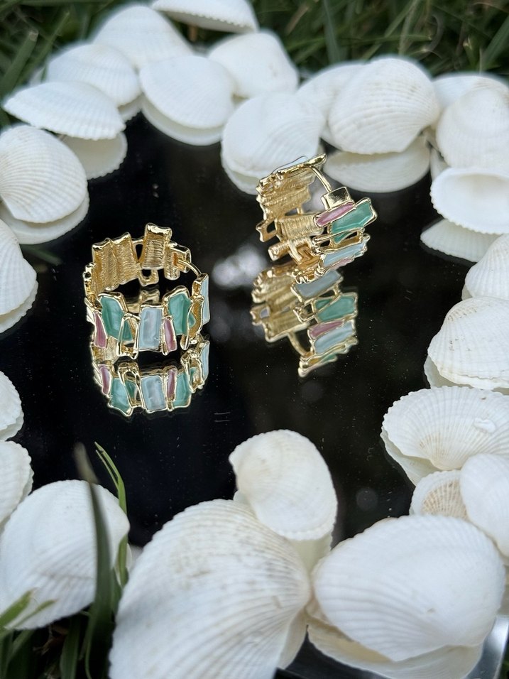 Pastel Taşlı Halka Küpe