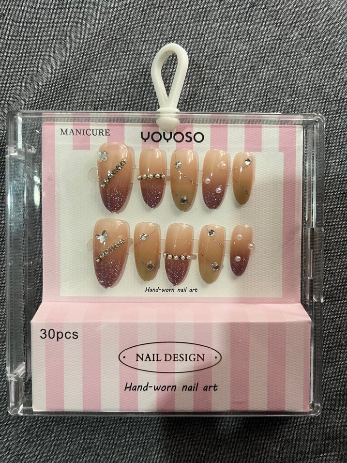 Pastel Taşlı Takma Tırnak - 30 Parça