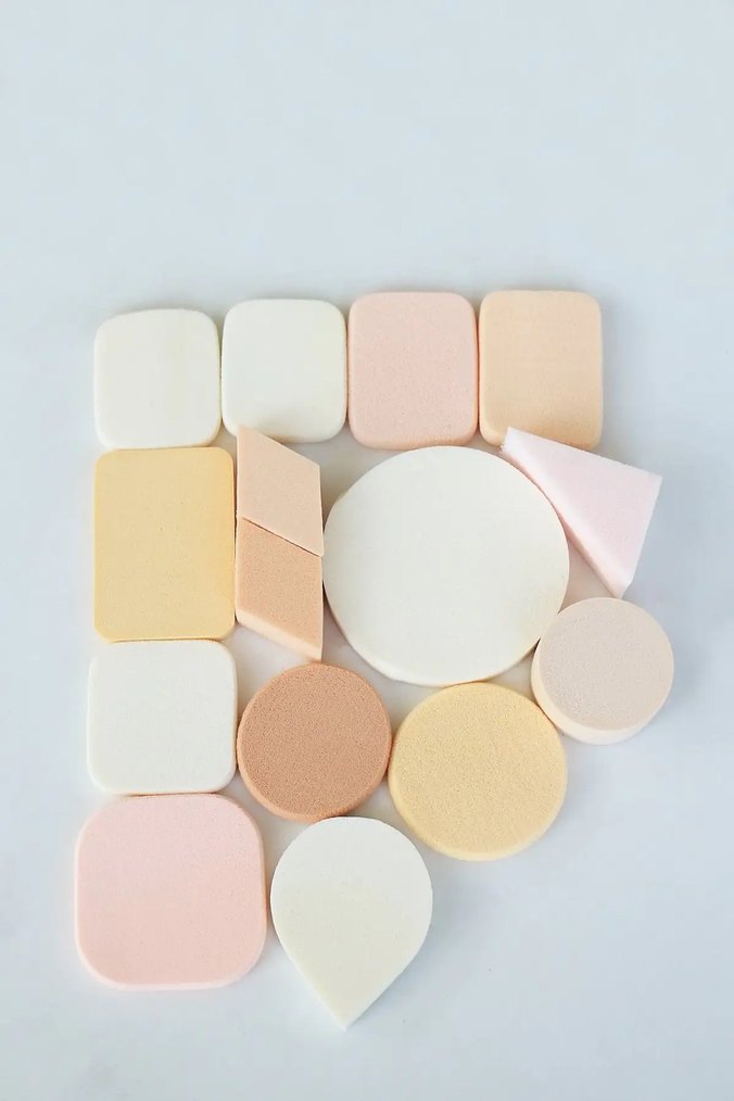 Farklı şekillerde pastel tonlarda beyaz makyaj süngerleri seti. Yumuşak dokusuyla kozmetik ürünlerin pürüzsüz uygulanmasını sağlar. 15 adet sıfır ürün