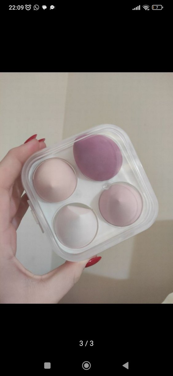 Pastel pembe tonlarında dört adet makyaj süngerinden oluşan set, pürüzsüz uygulama sağlar.