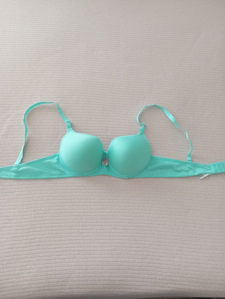 Pastel turkuaz renkte, düz ve desen içermeyen sütyen. Ayarlanabilir askıları ve normal uzunlukta yapısıyla minimalist bir tasarıma sahiptir. Dolgu destekli 80 b yeni ürün