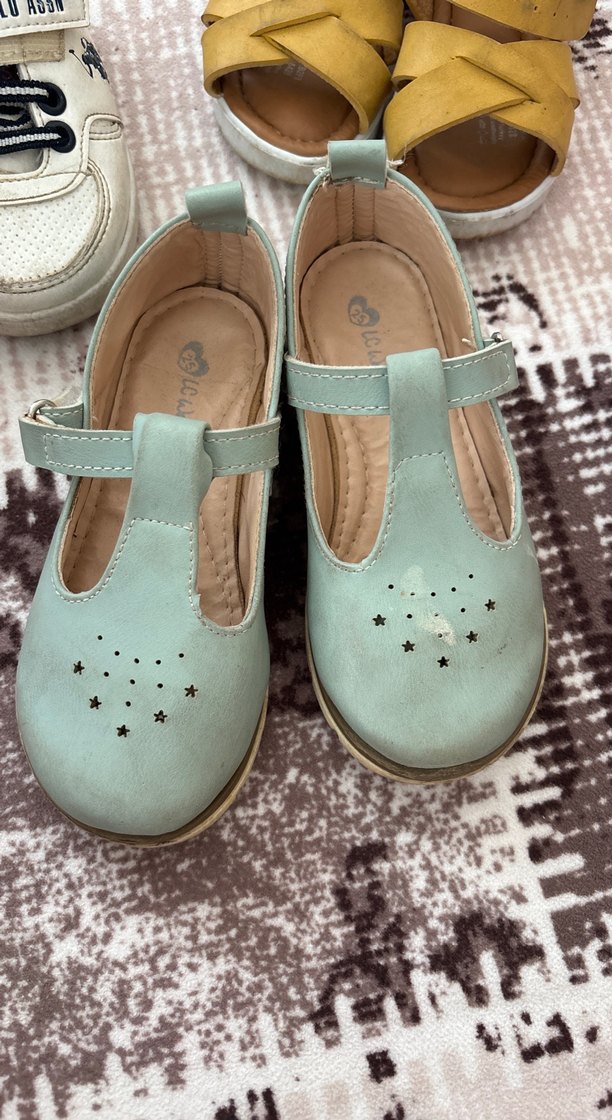 Pastel turkuaz renkte, tokalı kayışa sahip kız çocuk babetleri, yumuşak kauçuk tabanlı ve sade normcore tarzında tasarlanmıştır.