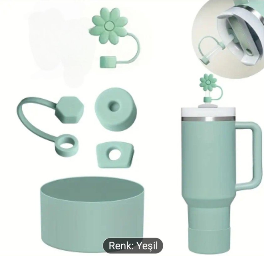 Pastel yeşil renkli sızdırmaz seti ve pipet tabanlık tıpa dan oluşuyor termos hariç hepsi gönderilecektir