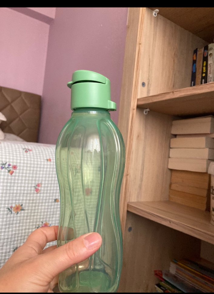 Pastel yeşil renkte, kıvrımlı tasarıma ve kolay kullanım için açılır kapak 500 ml su şişesi. Hafif ve pratik bir üründür.