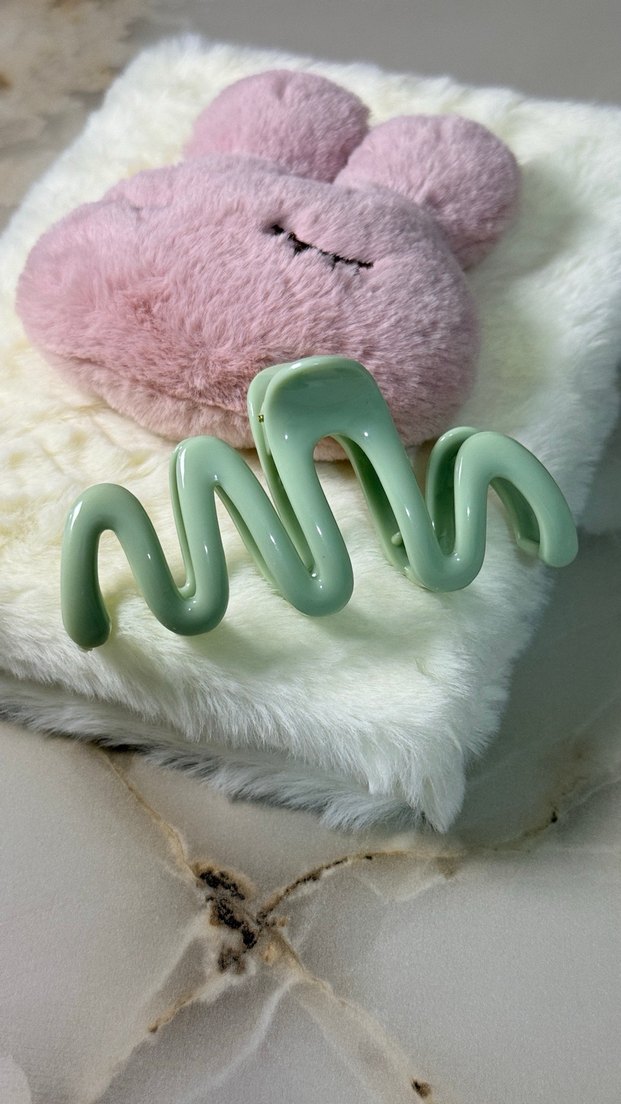 Pastel yeşil dalga şeklinde saç tokası, yumuşak malzemeden yapılmış, şık ve rahat bir görünüm sağlar.